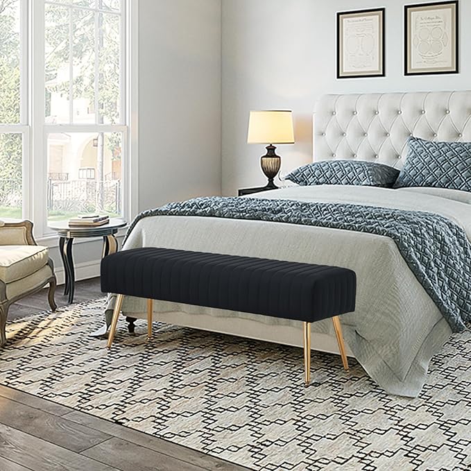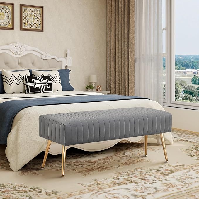 Phirkcraft Pink Velvet Ottoman Bench, Modern Upholstered Bedroom Benches Footrest Stool Indoor Bench for Entryway Living Room Bedroom Dining Room (Velvet-Pink)